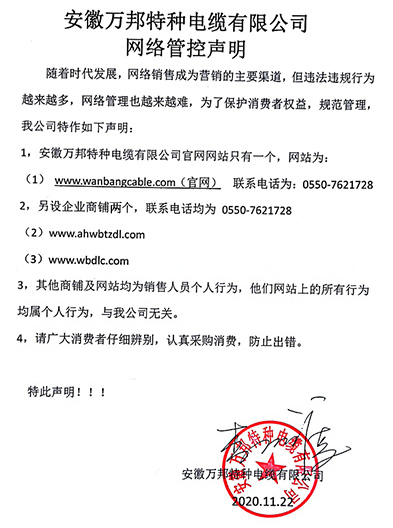鄭重聲明:安徽萬邦特種電纜有限公司官方網站為:www_wanbangcable_com.hs-coast.com,除此之外無任何子網站或合作網站,其余均為假冒偽劣。電話:0550-7621728 13485756353 地 址:安徽省天長市滁州高新技術產業開發區經四路29號